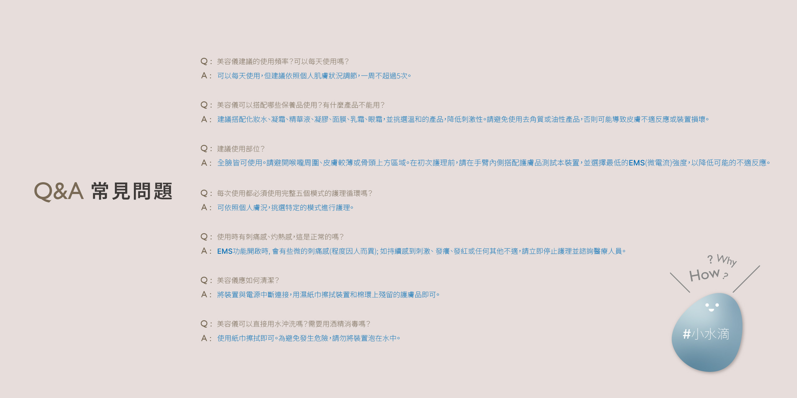 💧 RF 射頻 / ION 離子導入 / EP 電脈衝 / EMS 微電流 / LED 紅藍光 / 震動 / 冷敷